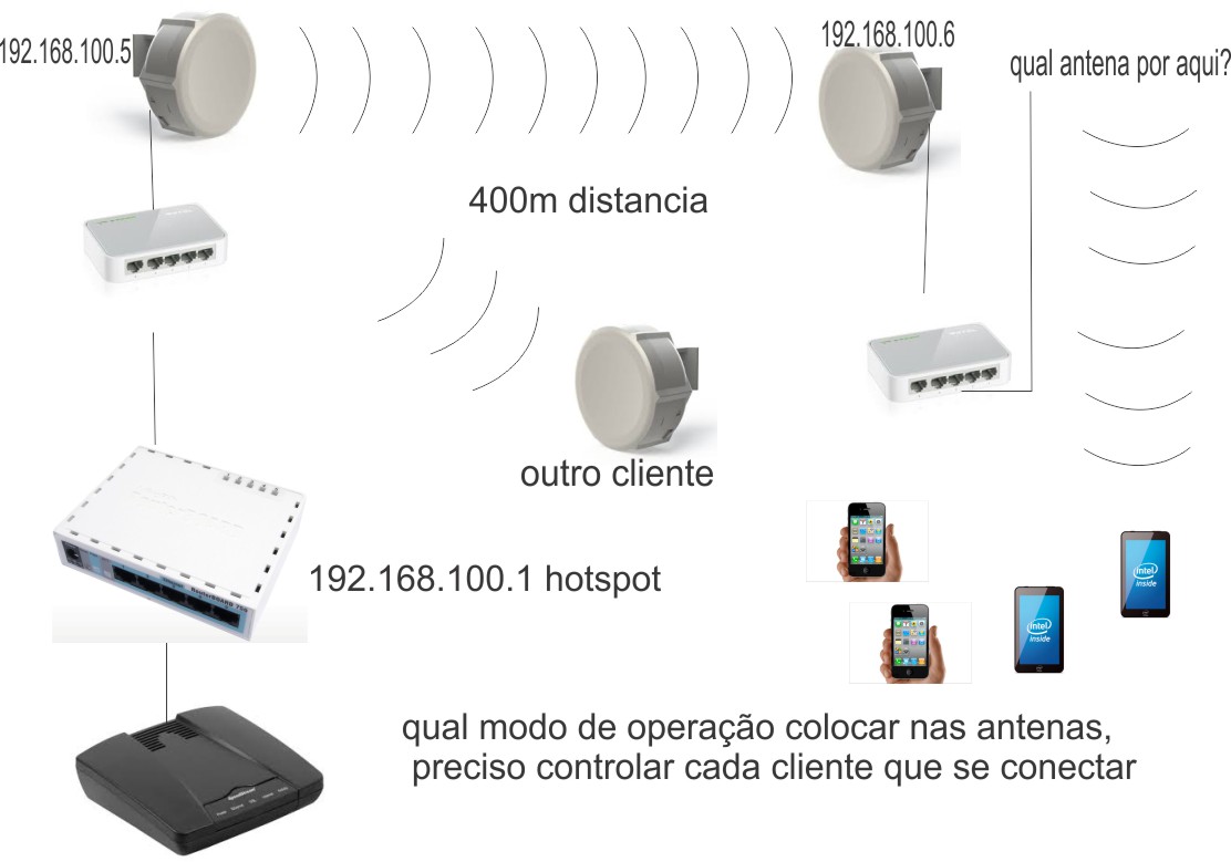 As sxts deixe bridge com wds ativado, e onde pergunta "qual antena?" se for ambiente interno pode ir de unifi, ou dependendo da densidade de users roteador simples em bridge.