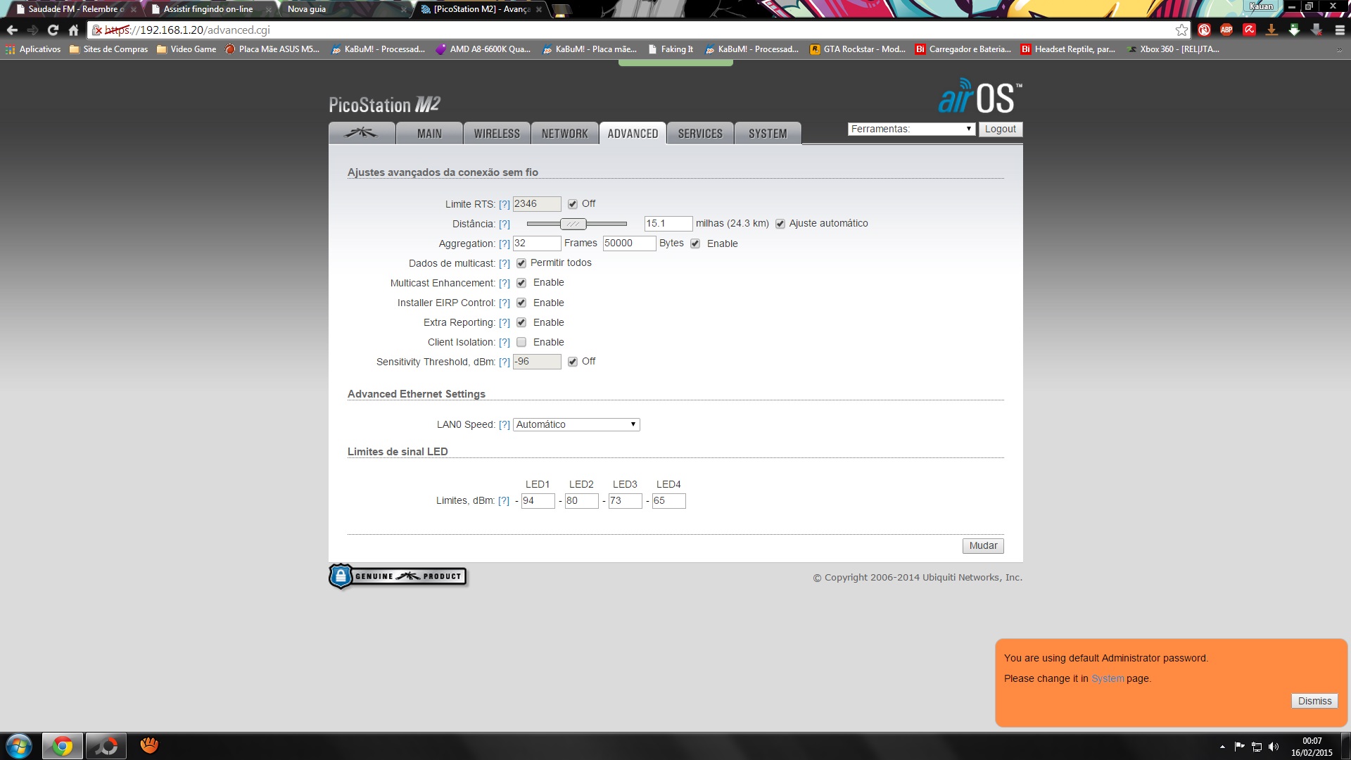 Quanto ao EIRP control, se deixar marca a opção "Auto adjuto TO eirp limite" o aparelho sempre vai transmitir na potencia maxima que a lei permite. Se você marcou o país brasil o limite é 36dBm EIRP, como a antena tem só 5 ou 6dBi (E você deve informar logo abaixo o ganho REAL da antena) o software vai colocar o hardware pra transmitir na potencia maxima (Que não chega a 30dBm). Então mantenha esse botão "Auto adjuto TO eirp limite" desmarcado. O limite EIRP é isso, o limite legal de emissão que é a soma de potencia do radio com ganho da antena.