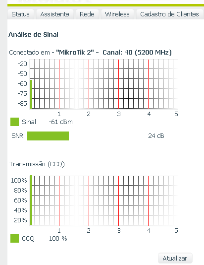 Ola primeiramente gostaria de agradecer a todos que responderao e reponderam o topico. consegui sim agora deu certo. o que eu tinha nao era duas wom e sim uma rb 433 e uma wom, entao fiz a configuraçao nos dois cartao da engenious 8602 iguais. e uma funcionou perfeitamente como se mostra figura a seguir. e ja conctei o pc e o not no mesmo hub e deu apenas um erro de ip. e depois foi normal. ( deixei a distribuiçao por conta do dhcp) e nao deu ams erro ( trabalho em 5.8) sei que o cartao nao e bom mas....