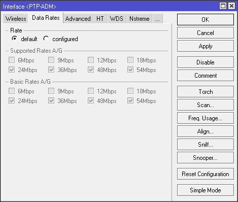 Tem uma configuração que deixei como Default,mas vejo muito em videos com outros modelos de Radios que nesta parte escolher customização e escolhe os Rates 24, 36, 48 e 54Mbps, deixo como default e escolho o Rates?