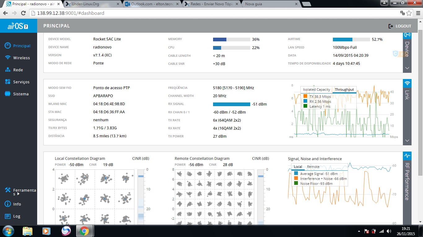 alguém pode me ajudar distancia de 13,8 km mas agora estou com muita interferecia e nao estou conseguindo arrumar um canal mais limpo tenho 100 mb de link esta trafegando so 38 a 42 mb
