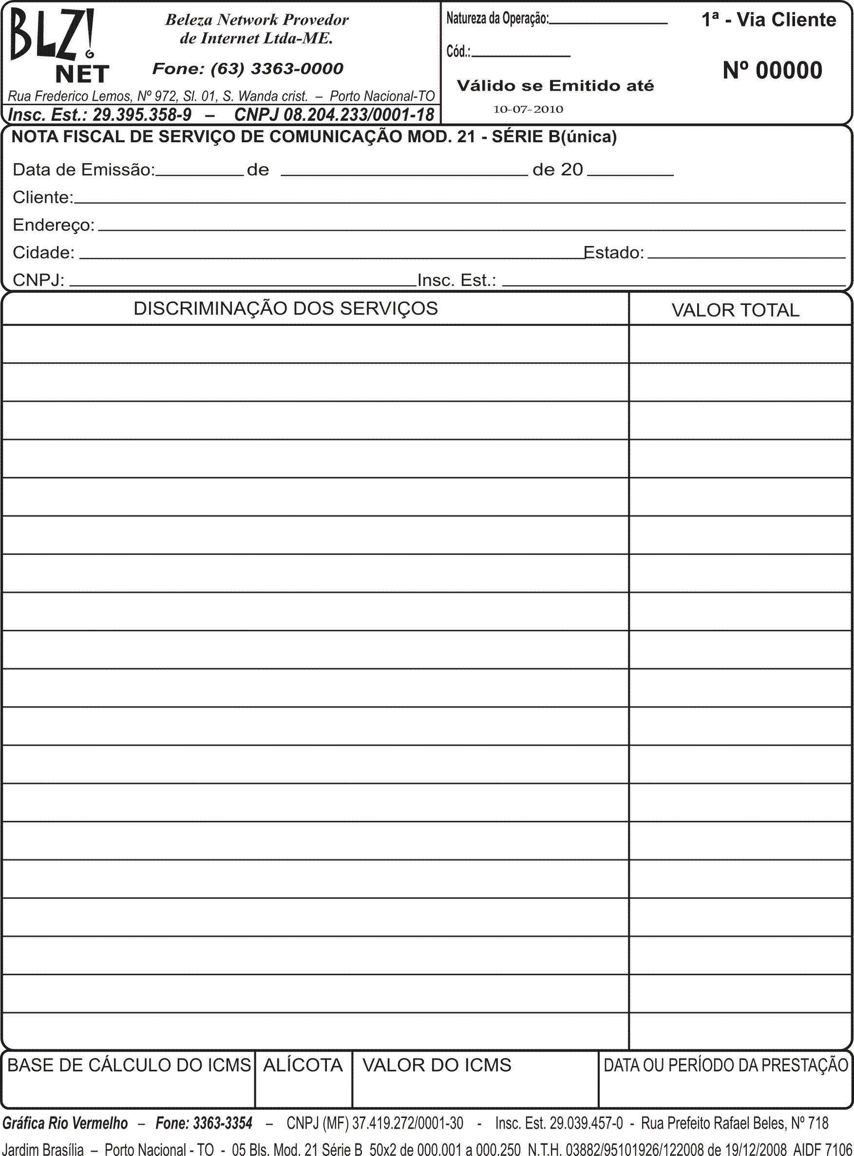 Modelo 21 - Serviço de Comunicação (Adequado pra Provedor de Internet Discada que não precisa de licença SCM e a Telecomunicação é feita pela empresa de Telefonia)
