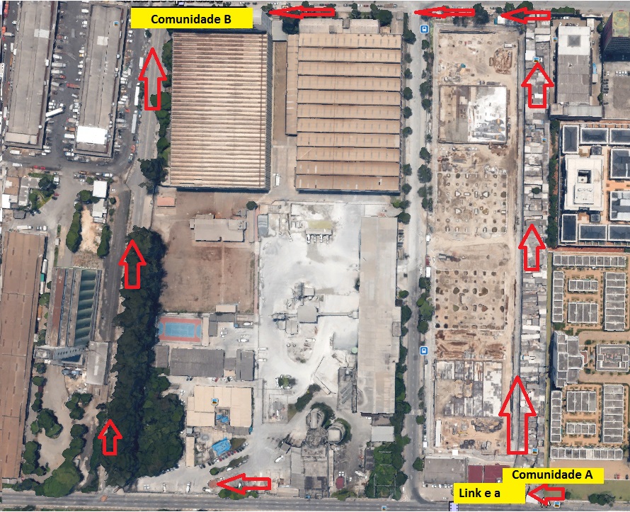 e onde esta o link com a RB se localiza a rede da Comunidade A com a extensão de + ou - 950 mts.