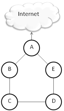 No exemplo abaixo tempos 5 roteadores A-B-C-D-E.