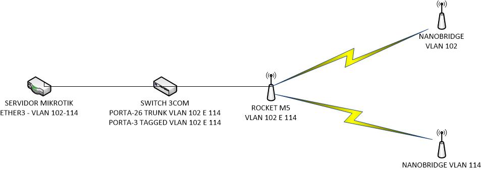 deste mikrotik o cabo vai na porta 26 de um switch 3com 2928SFP Plus, configurada como trunk, tagged da vlan 102 e 114;