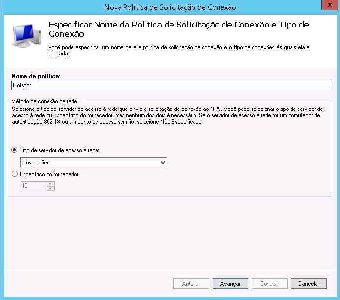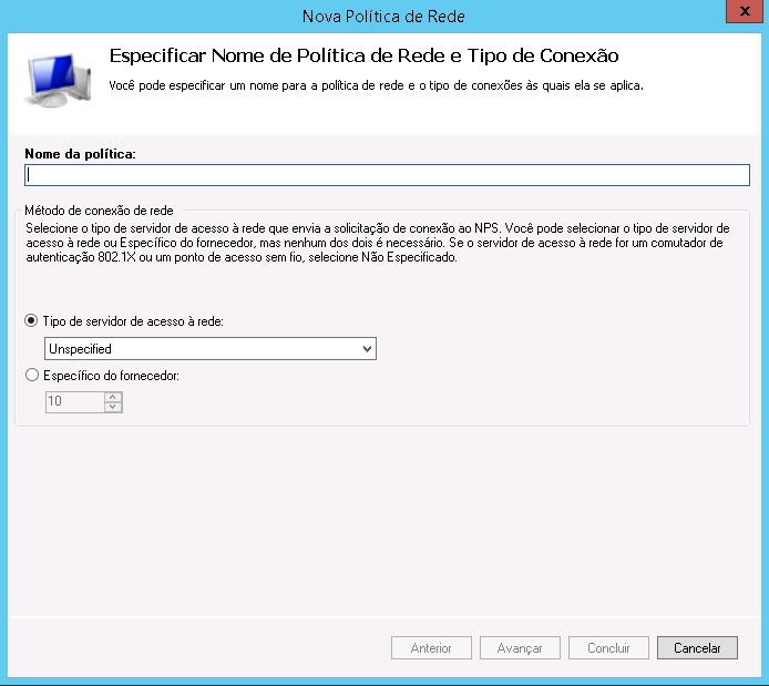 5 - Em "Nome da Politica" Coloque qualquer nome para identifica-lo, e clique em avançar.