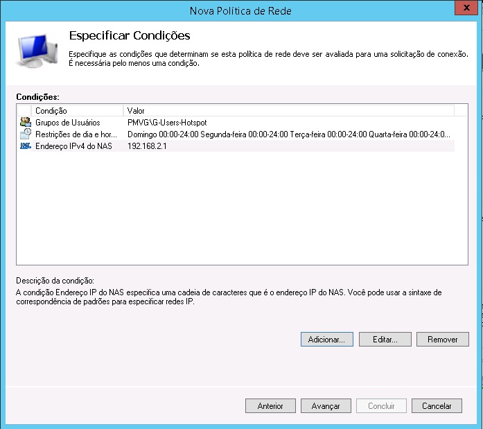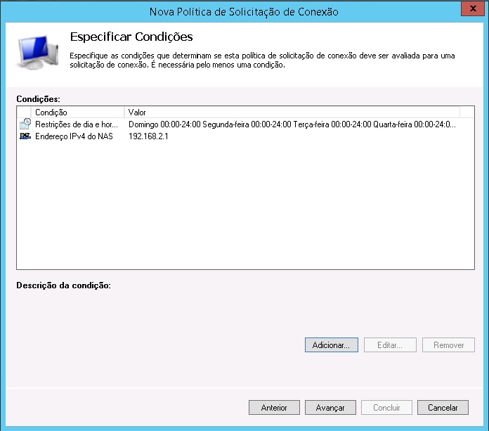 6 - Na janela "Especificar Condições", clique em adicionar.