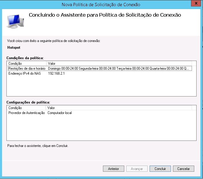 10 - Veja o que foi configurado e clique em concluir.