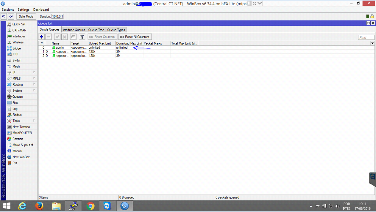 Estou com um problema. Tenho 3 usuários cadastrados no meu Mikrotik todos com conexão PPPoE e limite de banda configurados corretamente, porém agora a noite fui fazer testes de ping em dois usuários e não obtive respostas, olhei no QUEUES na RB e as vezes aparece o roteador do cliente conectado outra hora não.