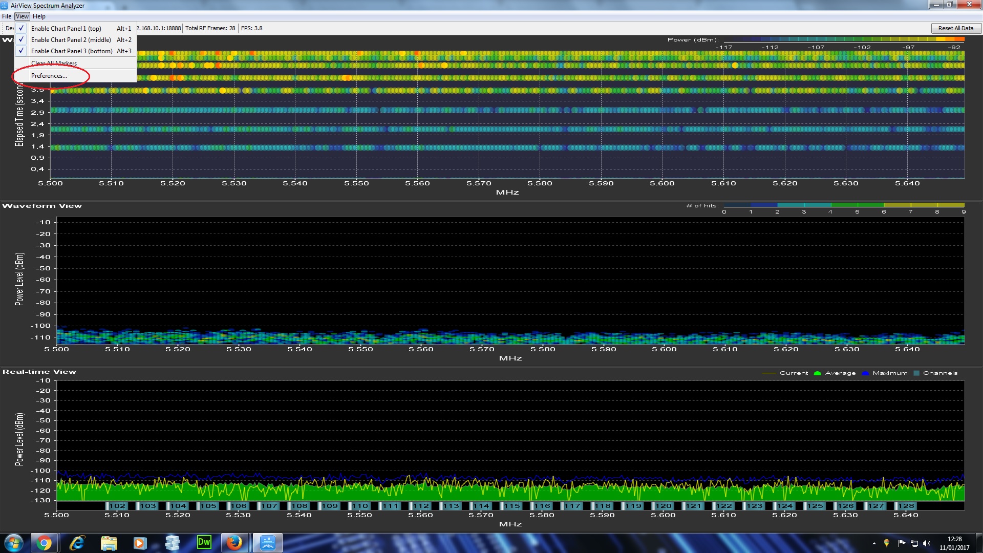 Amigo... primeiro esse Airview tá em uma faixa muito estreita. Entre 5725mhz e 5820mhz é uma amostra muito pequena. Ajuste o Airview para uma faixa mais larga entre 5500mhz e 5800mhz. Deixe rodar por uns 5~10min no mínimo.