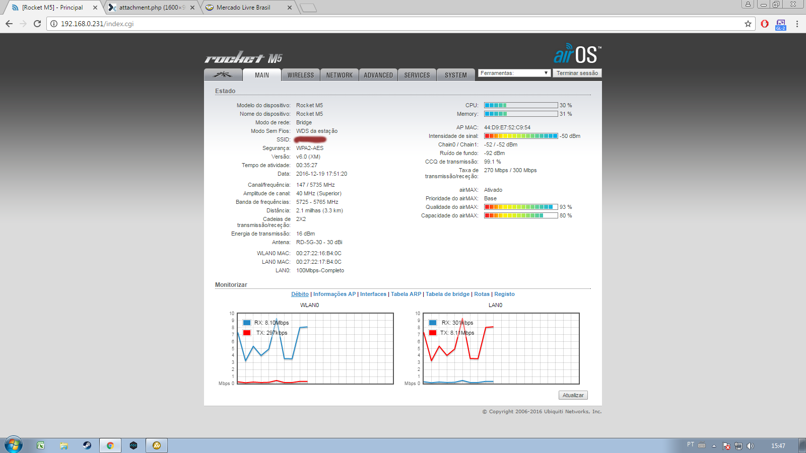 Equipamentos que eu to usando e 2 Rocket M5 com o seu Dish de 30Dbi.