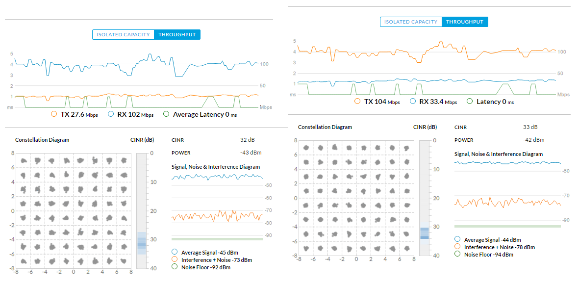 Tenta baixar um pouco a potência das 2 antenas, e fazer um alinhamento um pouco melhor pois ta dando uma diferença de 4 a 5 dbi entre os chains.