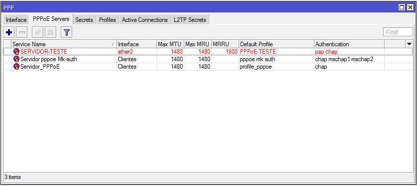 Provavelmente você renomeou a Ether 2, e o servidor pppoe ficou sem interface valida associada.