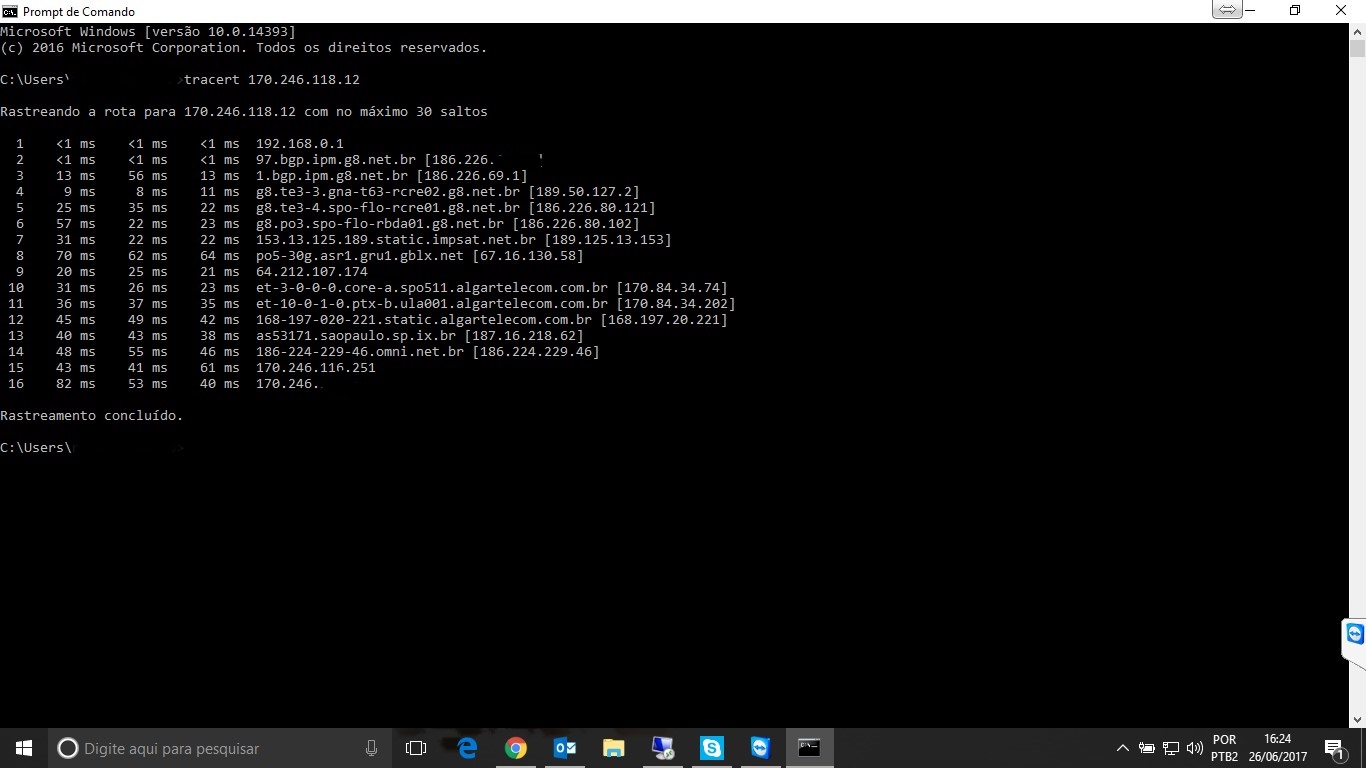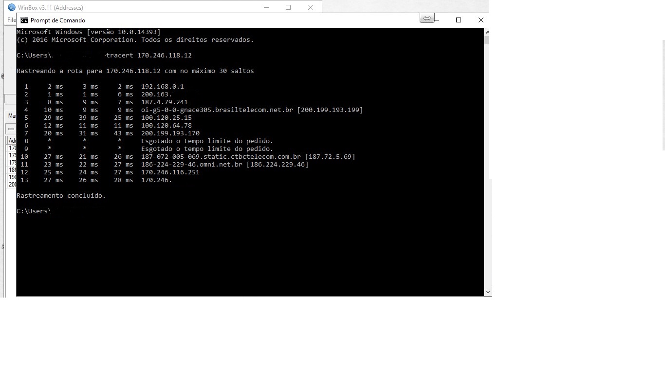 Segue em anexo os prints dos tracert.Clique na imagem para uma versão maior