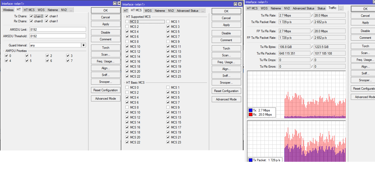 Blz galera, gostaria de saber o seguinte, estou com um ptp de 50 km com sinal -58/-58 caindo constantemente no log apresenta-se sempre a mesma msg: disconnected, extensive data loss. As quedas mais constante sempre se apresenta entra 22:00 e 10 horas da manhã, de dia o ptp se apresenta estável. Já tentei várias canais mais o problema persiste, o enlace não fecha com nenhum tipo de protocolo nv2 nstreme, tb já tentei.