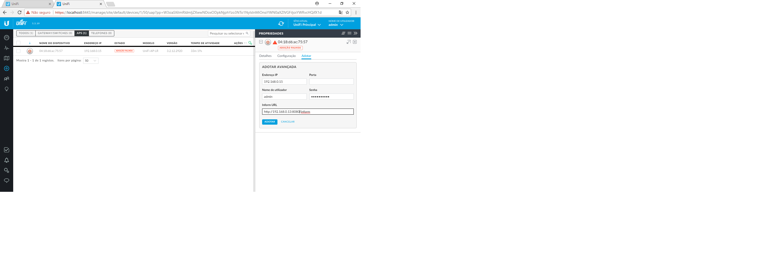 Outra dúvida só tenho um Unifi no momento e está funcionando e mesmo assim aparece que ele esta desativado conforme a imagem.