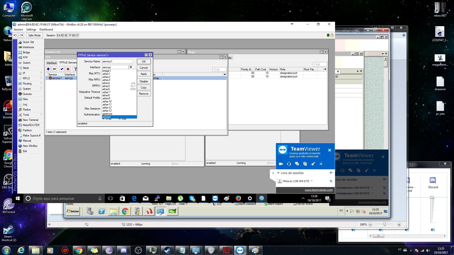 boa tarde, estou tendo um problema de comunicação da onu até olt, o pppoe roda direto do pc ligado a rb, minha onu não esta discando o pppoe, nem se eu colocar ela em bridge e rodar o pppoe direto no pc, irei anexar os prints da minha configuração para melhor visualização do problema, obrigado pela atenção abraços.