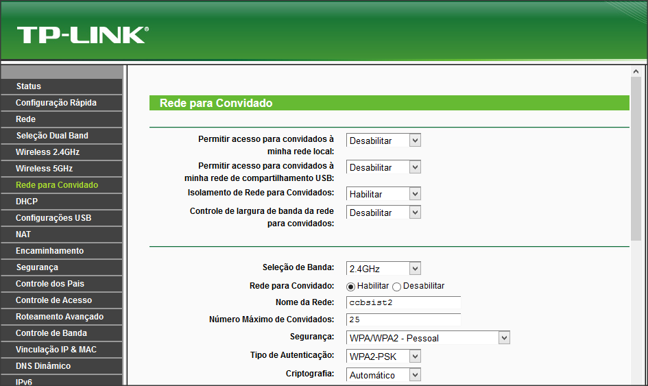 Padrão Tenho o roteador TP-link Archer C2 que não funciona a rede guest.