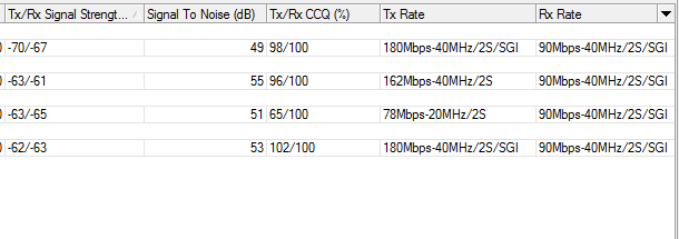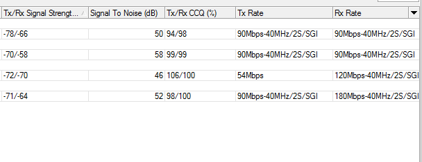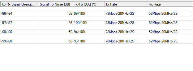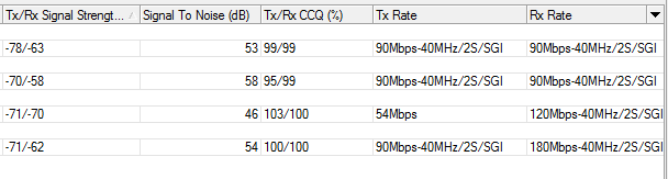Mesmo com o CCQ bom nas estações, especificamente o o TX do AP fica variando com valores baixos, como na figura acima. Enquanto todas as outras configurações, apresentam uma "teórica" impressão de qualidade.