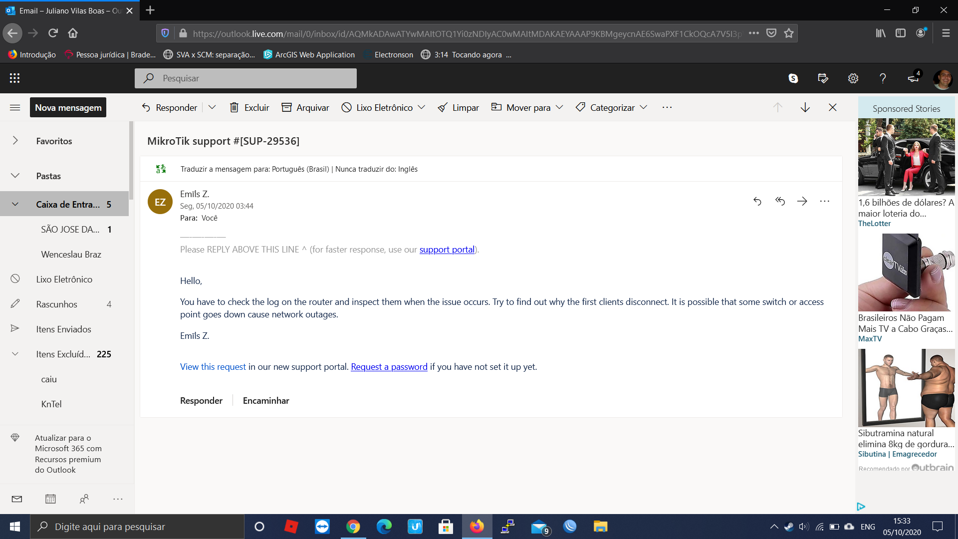 chegou a reposta da mikrotik... as 3 da manhã e eu nao havia visto!