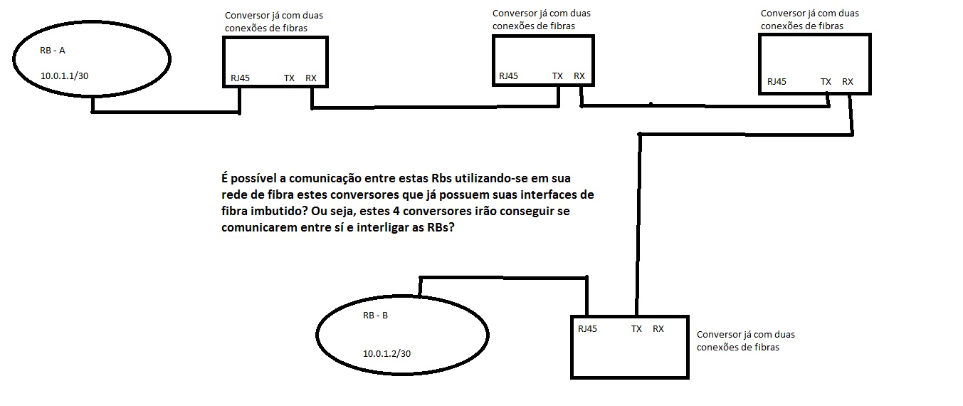 Preciso interligar duas rbs mas que no percusso preciso aproveitar a estrutura da fibra pra atender alguns clientes e aí veio a ideia de usar conversores com duas interfaces de fibras (tx e rx) este do link abaixo: