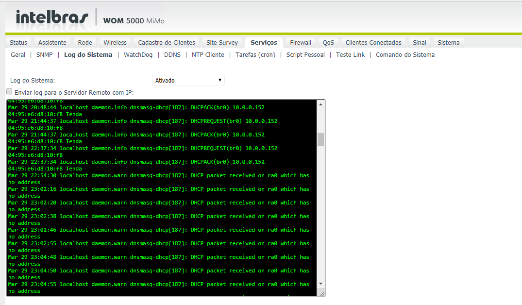Alguem saberia informar do que se trata o seguinte log nas antenas intelbras wom 5000 mimo: