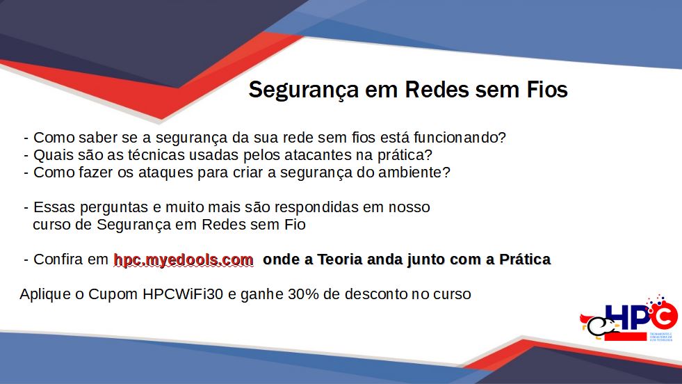 Nesse curso ensino diversas técnicas de invasão a redes sem fio e, o mais importante, como se proteger e implementar os métodos de segurança para proteção de seu ambiente.