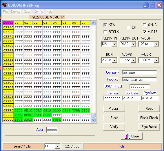 5) usando o programa IP2KPROG ler o arquivo senao.bin e mandar gravar