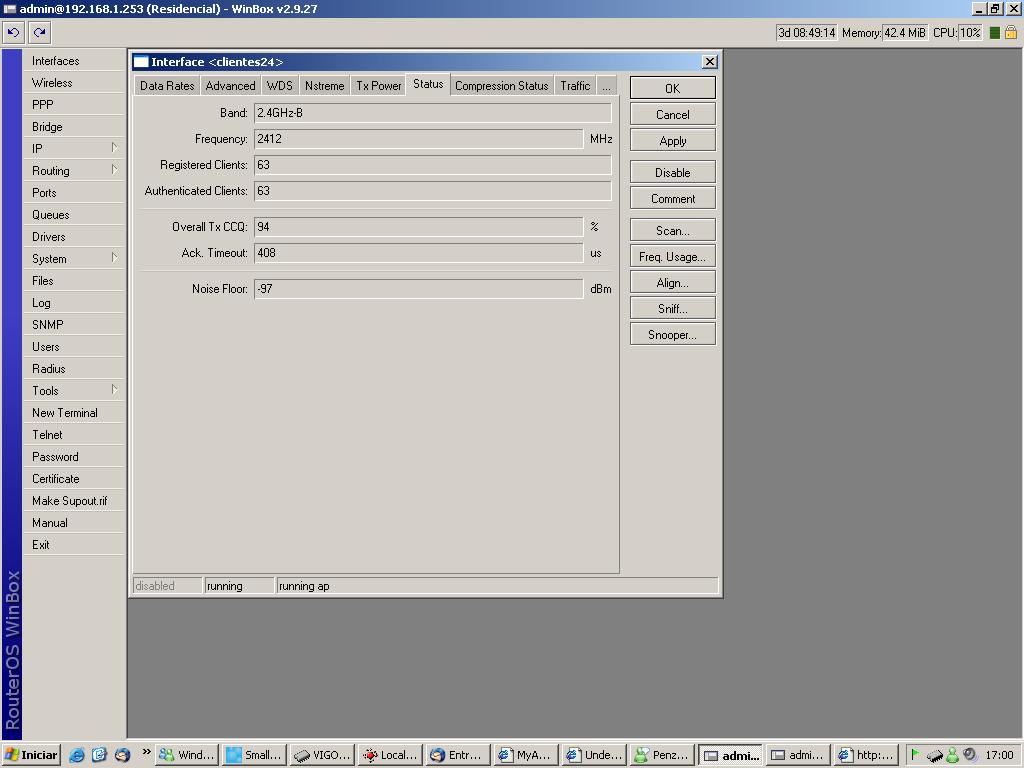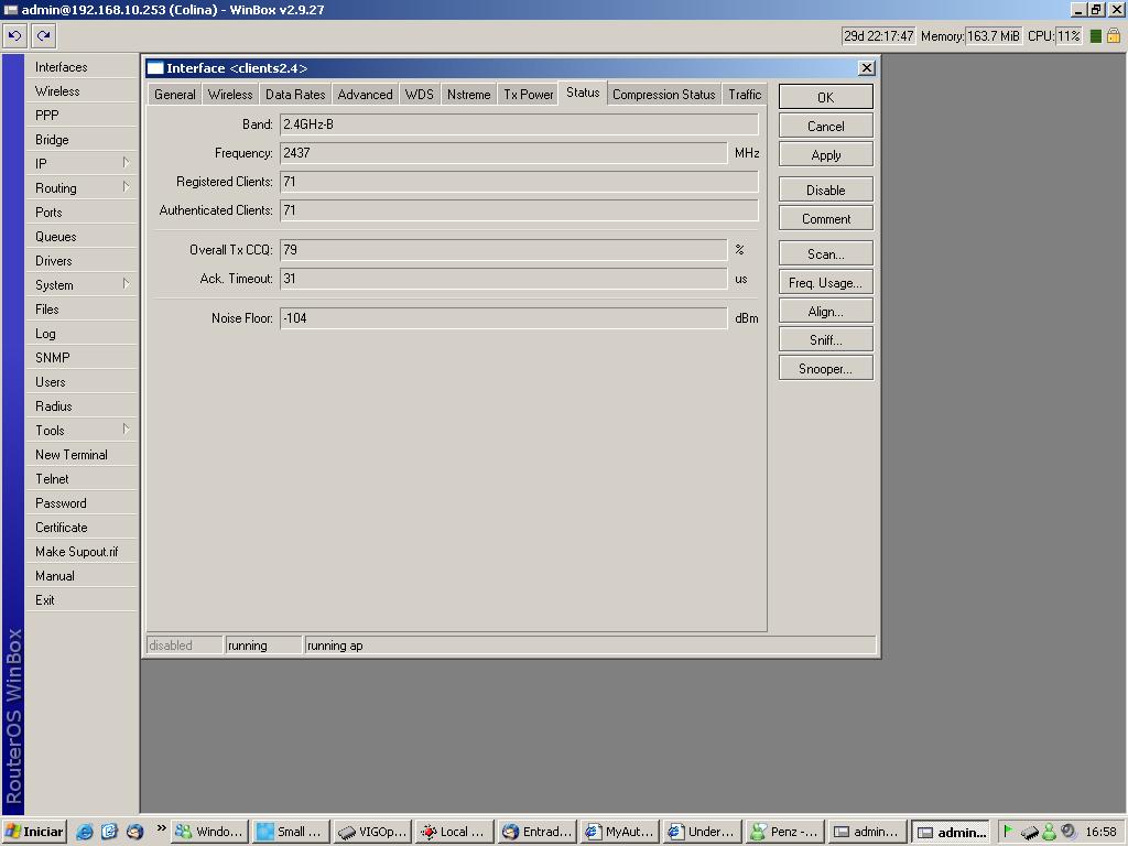 o mikrotik que uso é o 2.9.27 a maquina é um celerom d 2.6 com 256 de memoria e ide flash de 32 mb