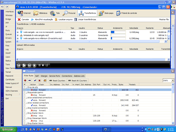 Pessoal já fiz de tudo para bloquear o p2p e o maldito ARES funciona com ou sem bloqueio, o cliente passa da banda contratada!