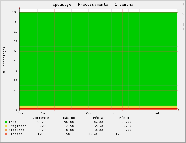 Seguem anexos os gráficos de uso da CPU na última 1 semana, segue também do uso da memória nas últimas 8 horas.