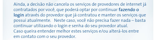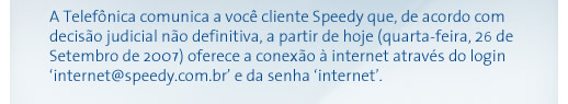 Ola pessoal, acho que muitos ja receberam o e-mail da telefonica dizendo que a justiça ganhou e que nao sera usado mais provedores para se conectar, eles ja ate enviaram um nome de usuaruo e senha, ate que emfim nossa justiça funcionou(pelo menos temporariamente vou enviar a imagem do e-mail que recebi