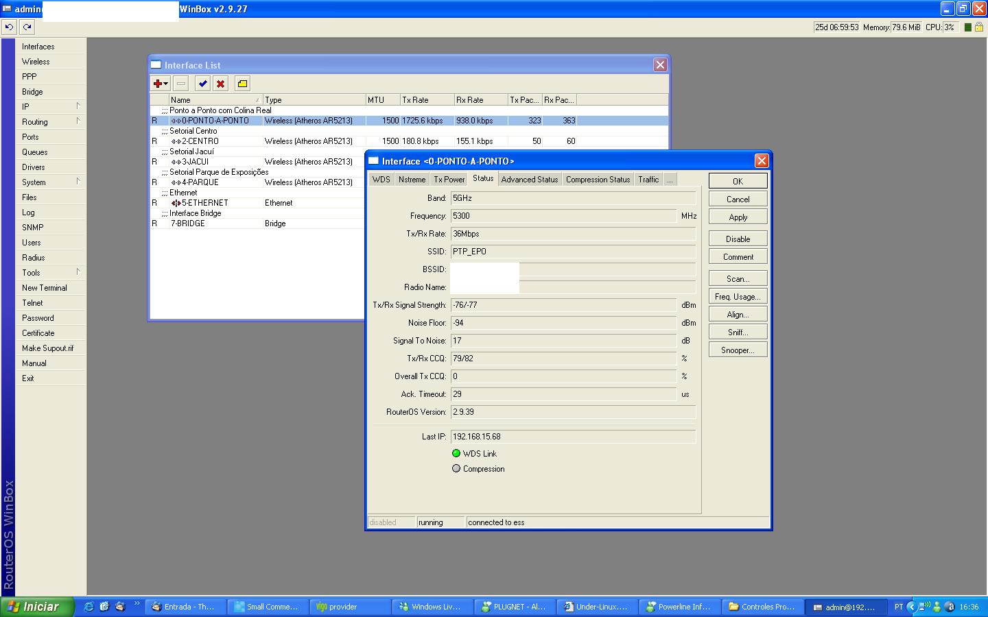 PS.: Notei o problema pois a navegação dos clientes está mais baixa depois que troquei alguns rádios dos PTP (eu usava AP600a Proxim no enlace principal do provedor e, com a troca, a velcidade baixou consideravelmente).