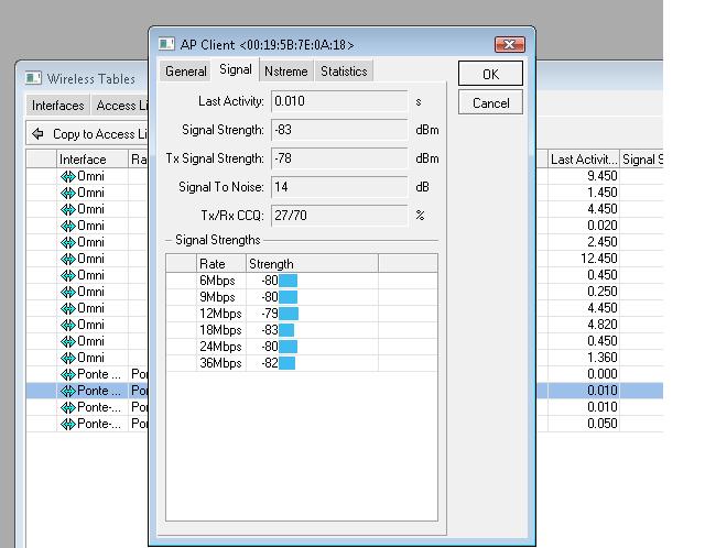 Pois eu estou fazendo um alinhamento em 5.8 que está muito dificil de acertar.. não sei se é terreno ou distancia mesmo.. mas o q está esquentando mesmo minha cabeça.. é entender os dados dessa tela.. pra saber quando eu mexer em uma antena q eu estiver na torre.. e mudar os dados para melhor ou pior.. eu vou saber de qual lado q está piorando.. por exemplo.. nessa IMG tem o TX e RX onde um deles está muito menor do q o outro.. eu queria saber se este lado q ta ruim.. é o q eu estou mexendo na antena ou é a antena q está do outro lado recebendo meu sinal.. e por falar nele.. nessa tela aparece 2 tipos de sinal (senssibilidade) que eu nao sei de qual lado q ele mostra.. tem um com TX tb..