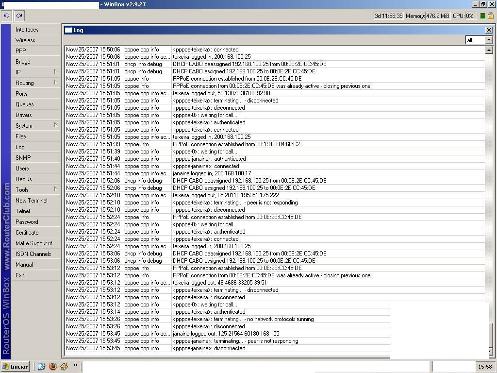 Isso melhorou o meu problema de clientes caindo sendo disconectados do pppoe sem parar, ou nem conseguindo se conectar ao meu pppoe server (windows retorna pros clientes que o servidor não respondeu), mas os clientes parecem estar navegando a velocidades bem baixas, uma vez que 15 clientes conectados planos 256kbps estavam causando um tráfego total de 300kbps na interface wireless do ap. Quero saber se a config desse jeito está liberando 5 conexões para todos ou 5 paracada cliente. Sabendo disso eu vou poder afinar a configuração aqui, aumentando o numero de conexões até chegar no limite de conexões simultâneas sem quedas em massa.