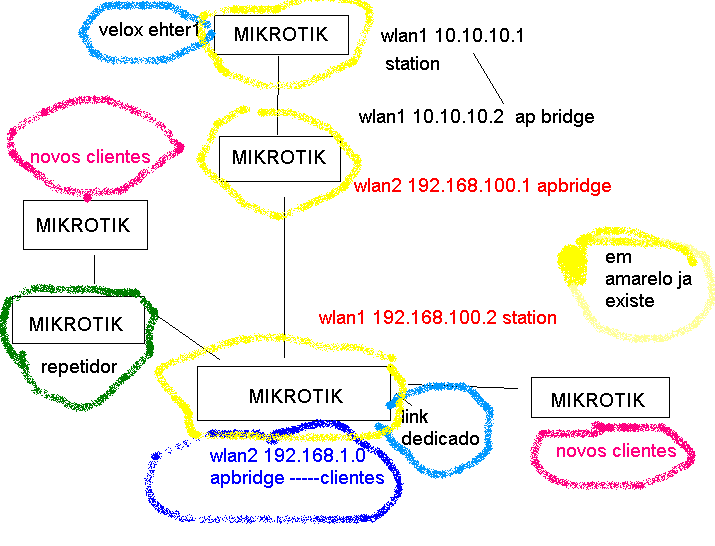 base clientes ---- recebe velox wlan1 192.168.100.2 e distribui para os clientes 192.168.1.0