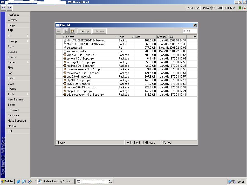 poxa alexandre tirei um print e os arquivos estão lá no Maré, estou com muito medo de efetuar a operação e dar alguma coisa errada, pois o funcionário que sobe na torre tah de férias dai ... se der errado já viu neh ??? vou ficar sem prover o serviço pra mais de 200 usuários .... baixei os arquivos referente ao routerboard e coloquei lah mas estou com muito medo de rebootar e dar errado .... gostaria somente que vc confirmasse pra mim através dessa imagem se os arquivos estao corretos, a minha routerboard é da série 300 se estiver errado ponha o link direto pra mim por favor da atualização senaum for pedir muito!