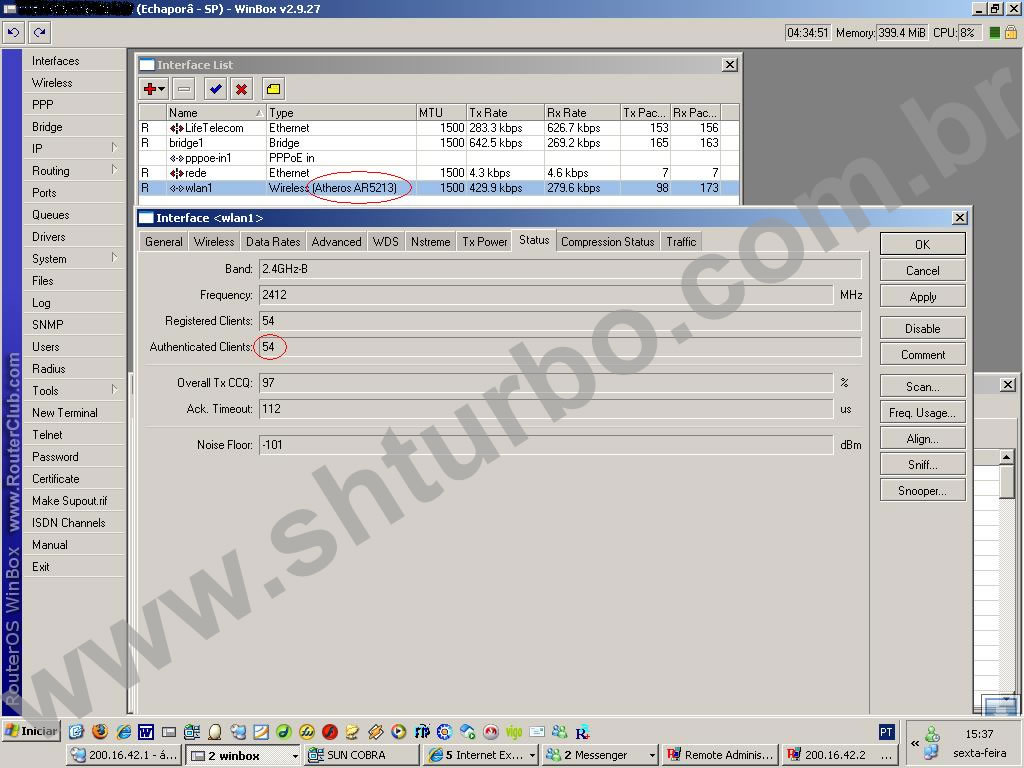 ola Pessoal. Estou com um problema a quase 2 semanas. ja recori a manuais. ao forum e ate agora nada. Uso uma RB 153 com 2 cartoes nmp8602. Ja troquei a fonte que veio com a RB (24v 1A) por uma de notebook(18v 6,5A). E mesmo assim quando o trafego passa de 1.5mb em qualquer cartao os clientes qu estao neste cartao comecam a ter ping de 700 800 ate 1000ms.ja tentei com TX power default e nada...