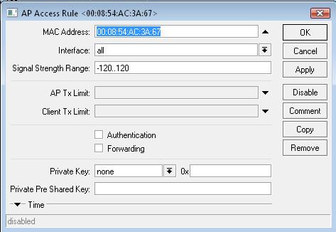 Mas foi lendo um post no fórum do Mikrotik Brasil que encontrei a solução que para mim já está boa a um dia inteiro (olha que realmente isto é extremamente ótimo para mim). Trata-se do parâmetro noise-floor-threshold, que do valor "default" passei para o número 55 como indicado pelo autor daquele post (que desculpe não lembrar o nome agora). Como que por mágica meus pings baixaram muito, mesmo nos meus picos de 2Mbits, enquanto antes eu enfrentava sequencias intermináveis de pings de 500ms a mais de 1000ms, com horríveis momentos a 3000ms, 4000ms, agora no máximo algumas pequenas sequencias a 200ms ou 300ms.