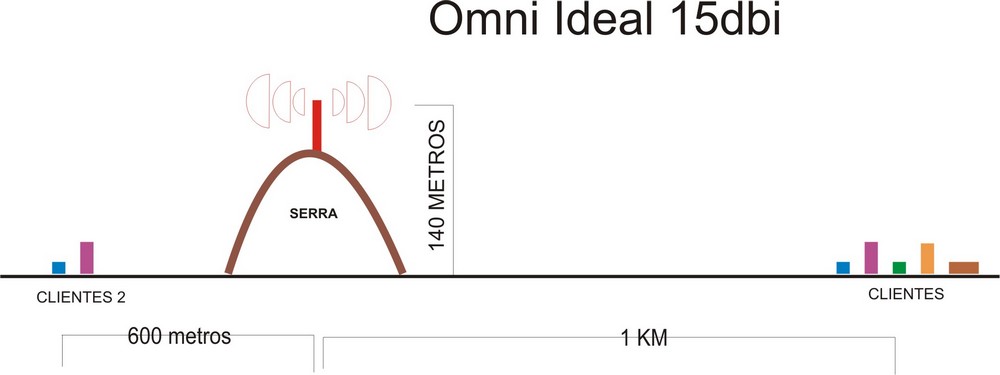 Estarei utilizando uma omni da Ideal 15dbi. Fiz um esboço para demonstrar as distâncias.