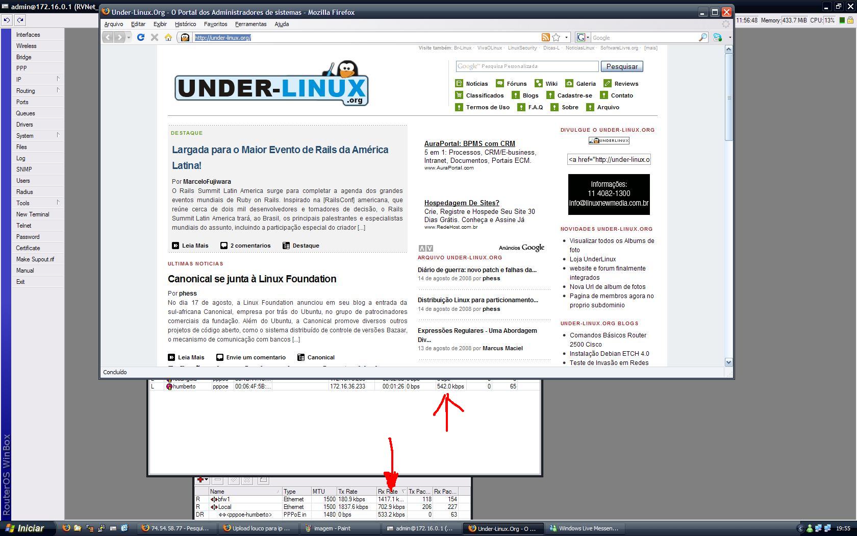 Um cliente hoje toda vez que se logou, estabeleceu uma conexão pela porta udp do ip do cliente para a porta 80 do ip 74.54.58.77. O upload máximo setado pra ele é 40k e na queue tree fica mostrando os 40k! Só que na aba interfaces o upload dele fica em 512kbps!! Tentei dropar de todo jeito e não consegui!