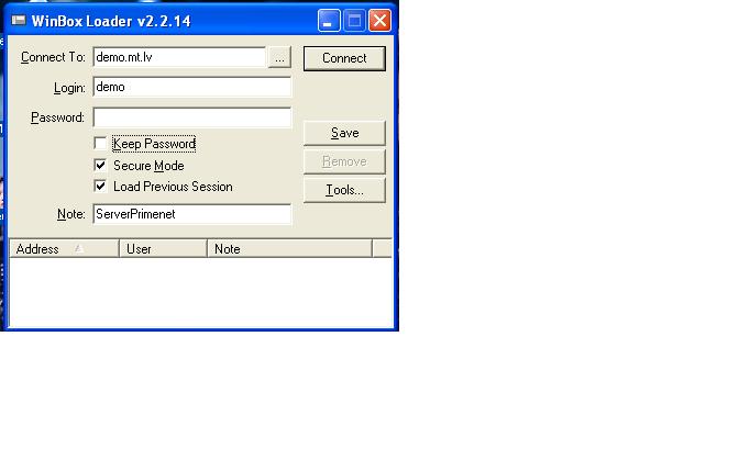dica: baixe o winbox vide arquivo em anexo e quem ja tem execute o mesmo e no campo connect to digite: demo.mt.lv e no campo login: demo e clique em connect, pronto navegação liberada para analise da versão.