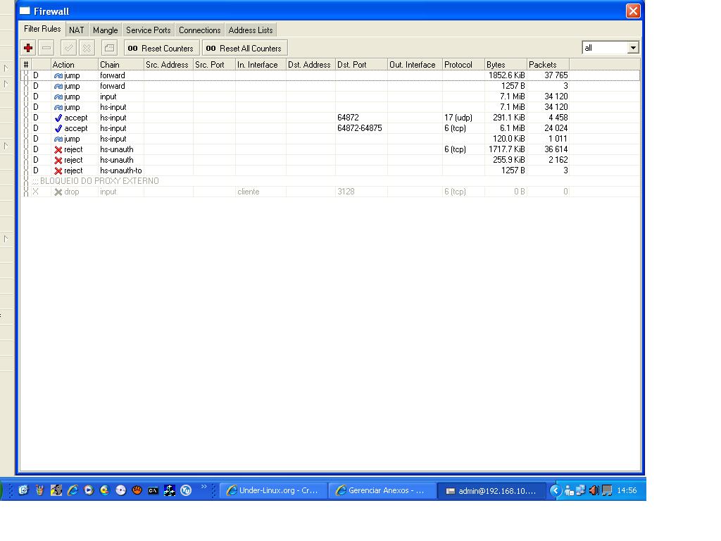 Olá pessoal, gostaria de saber se minhas regras de firewall estão td direitinho, porque comprei o meu servidor Mikrotik já montado e configurado. Estou enviando as telas para todos darem uma olhada, desde já agradeço.