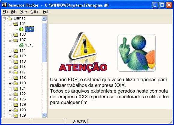1º passo: ResHacker.exe > File > Open > C:\WINDOWS\system32\msgina.dll