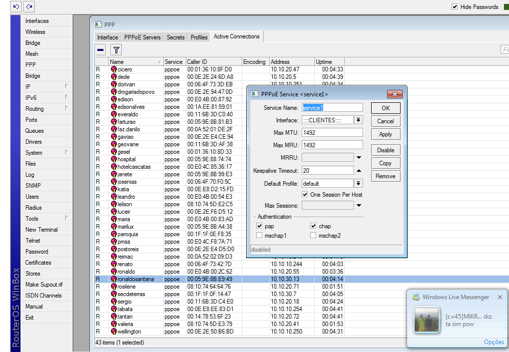Estou com um probleminha aqui da seguinte forma, que quando chega media 70 à 80 clientes conectados, começa a cair os clientes do pppoe.