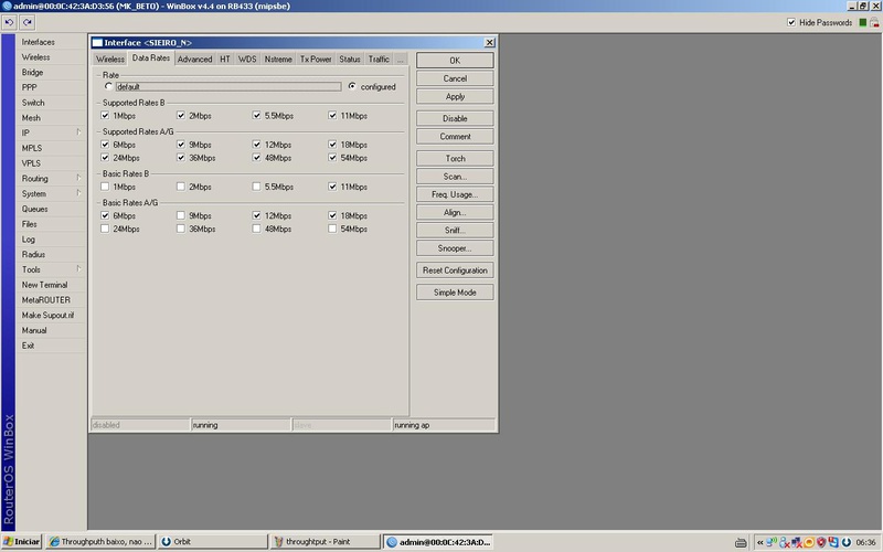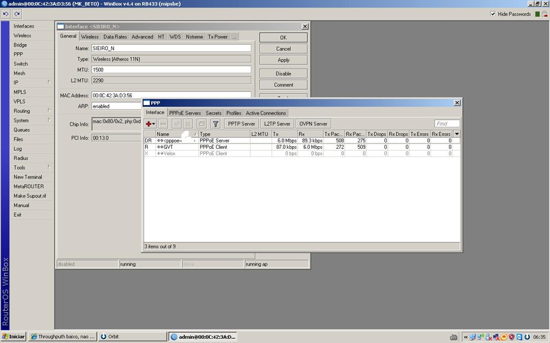 Ola colegas, aqui na empresa tenho uma rb 433 com um cartao r52 e uma GVT 15 megas, nenhum dos notebooks da empresa conseguem baixar a mais de 600kb da internet, a cartao esta configurando em modo G only e nada....