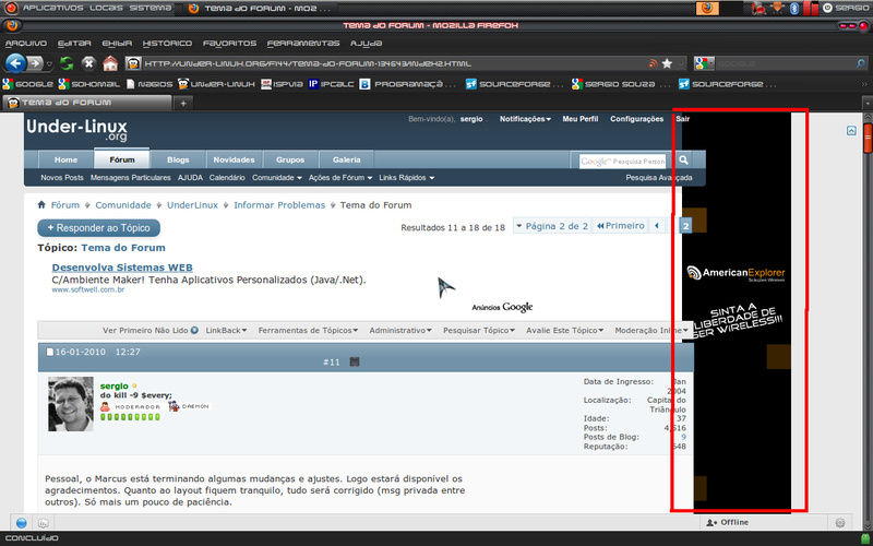 Depois que este tema do Underlinux mudou, achei a navegação lenta e não gostei.