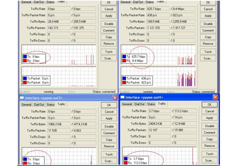 Tentei ajudar o Junior ae, até refiz o load dele que tava cheio de negação ( ! ) nas regras, mas o trafego não se equilibrou, cheguei a conclusão que tem algo errado la com ele, questão de hardware.