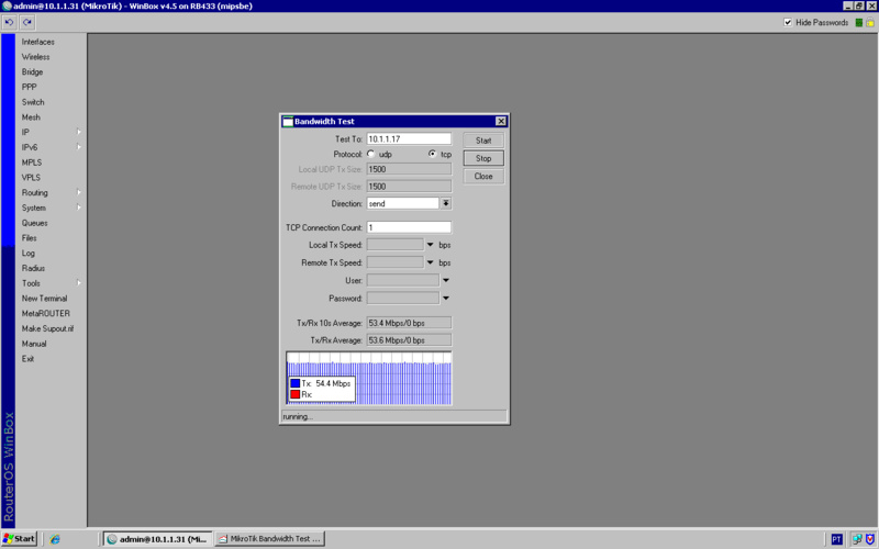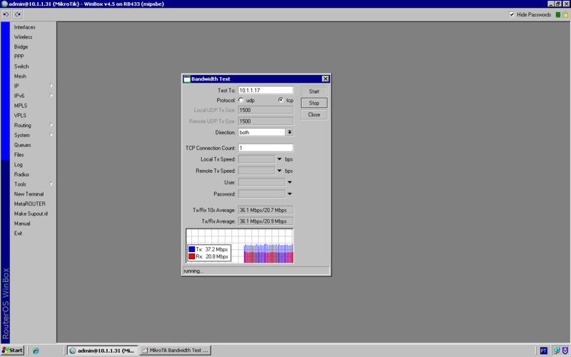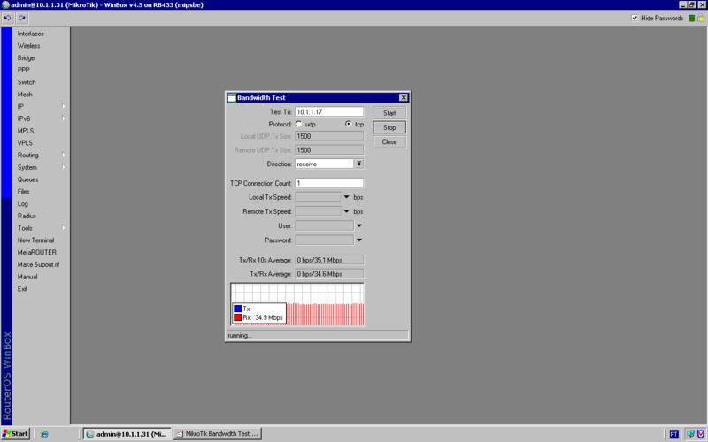 Observação1 : Acredito que a taxa de RX mostrada na imagem está limitada à velocidade da interface do servidor (PC com Btest) usado no teste, pois a variação máxima foi de 0,3M.