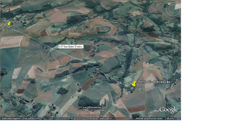 Quero Levar Internet Na Casa Do Meu Pai Para Usar No Final De Semana Que Vou Pra La, E Não Quero Gastar Muito, Estou Pensando Em Usar 2 UBIQUITI NANOSTATION LOCOM9 900MHZ, Dados Dos Pontos . Ponto A - 25 º 32' 45,60'' S -- 52 º 24' 18,83'' O Altitude 754 Metros Ponto C - 25 º 34' 17,87'' S -- 52 º 23' 36,91 '' O Altitude 742 Metros So Que No Meio Exixte Um Moro Que Da 805 a 810 Metros, As mediçoes Todas Metros Do Nivel Do Mar. Gostaria De Uma Opinião De Vocês Se Fecharia Esse Enlace Ou Qual Equipamento Deveria Utilizar Para Este Enlace, Ou Alguma Solução Não Muito Despendiosa R$$$$ Hehehe, Desde ja Agradeço A Opinião E Dicas Dos Amigos Do Forum.